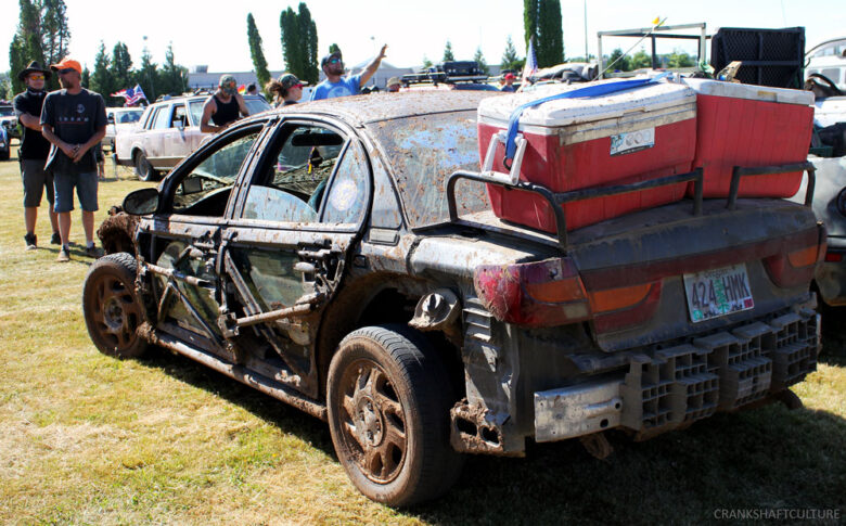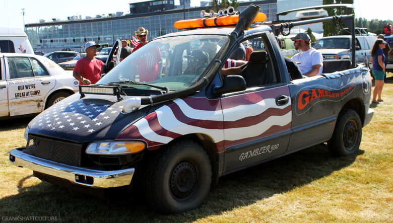 As the day drew to a close, those who could still drive their hacked-up hatchback, sawzalled SUV, lifted sedan, or chop-top minivan made their way back to Portland Meadows for a car and vendor show, give-away session, and post-run beverages. There was even a vehicle auction where Gamblers could sell their rigs for cash that would get donated to the Children’s Cancer Association. In fact, the Gambler 500 ended up donating $3,200 to the charity.